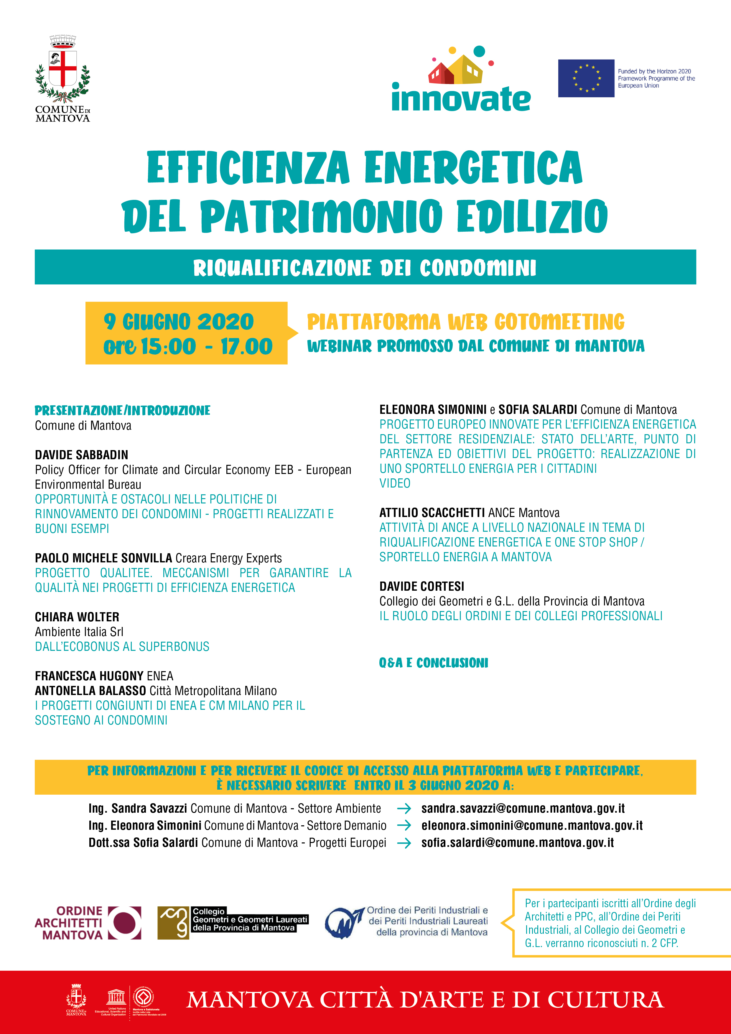 apartments 924786 640Il Comune di Mantova organizza un nuovo evento di comunicazione e formazione sul tema della riqualificazione energetica degli edifici nell’ambito delle attività del progetto europeo “Innovate” di cui è partner.