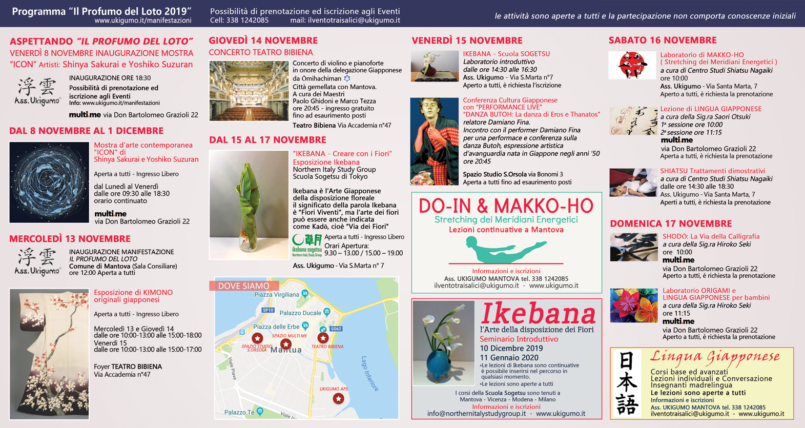 Dettagli programma: http://www.ukigumo.it/profumo-del-loto-2019-mantova/